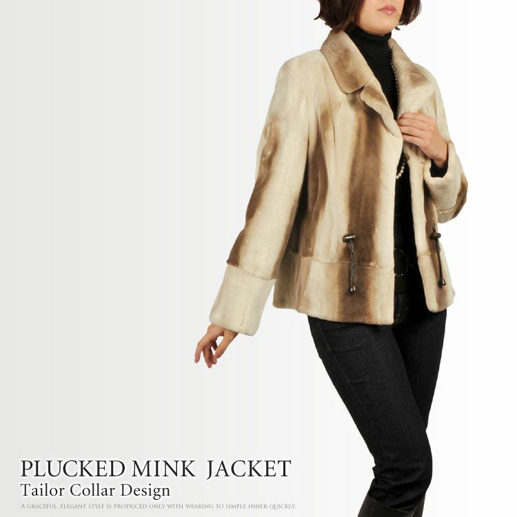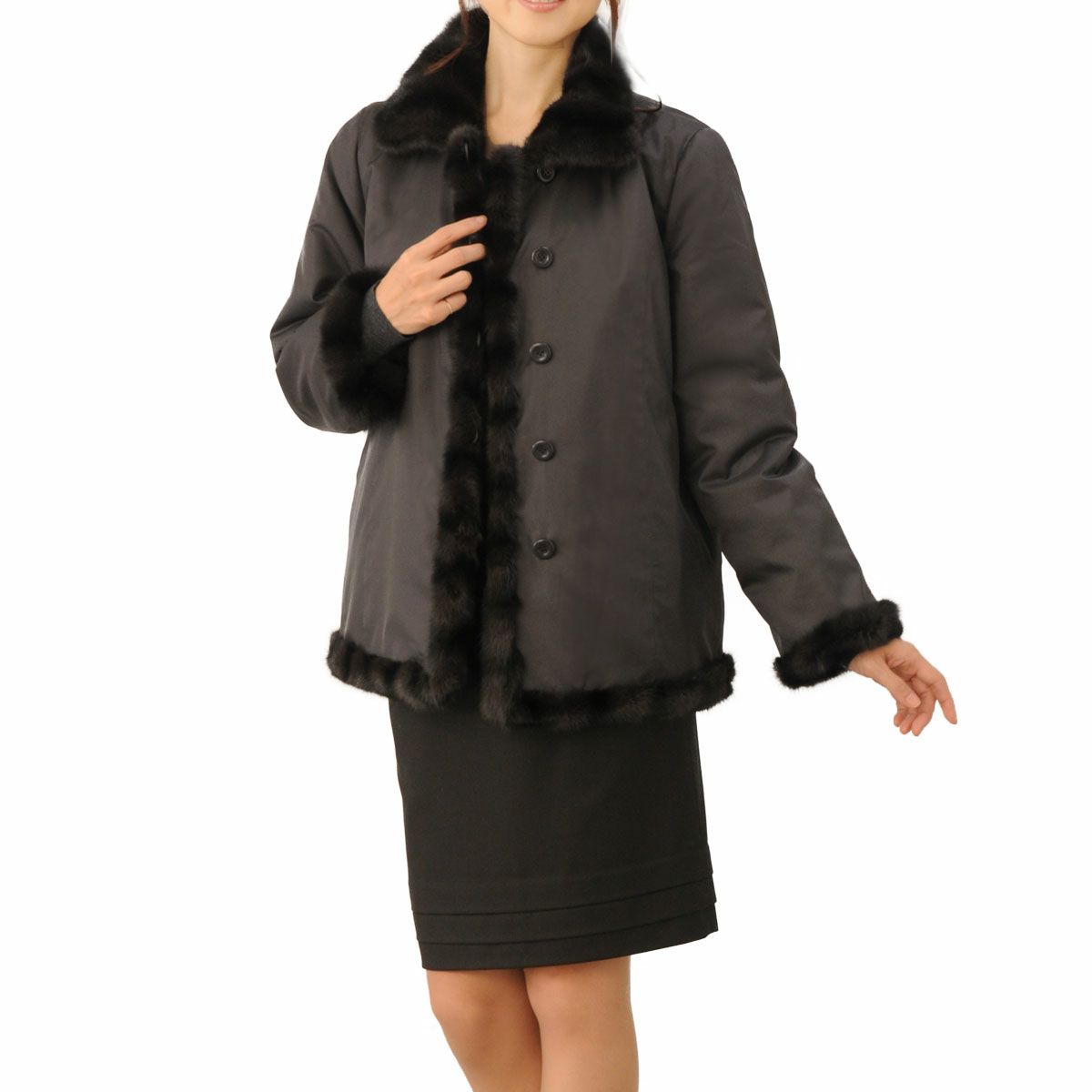 シェアード加工 ミンク ジャケット ブラッククロスミンク トリミング 着丈65cm 7F