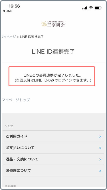次回以降、LINE IDでログインがご利用頂けます。