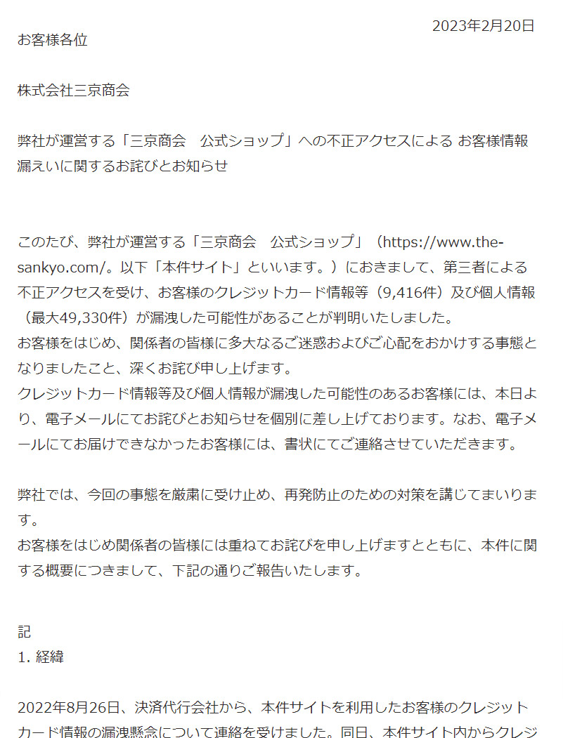 →三京商会を装った詐欺サイト・メールにご注意ください