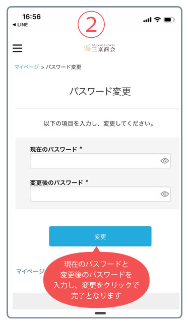 - 今使っているパスワードを変更したい場合は、マイページにログインしてパスワードを変更することが可能となります。