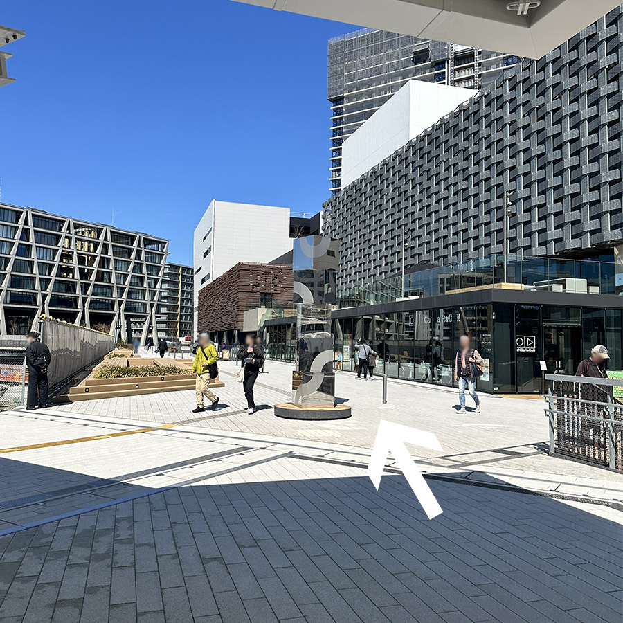 2:右側の建物(ローソンや図書館)の前を通過します。(歩行者デッキとは反対側です)