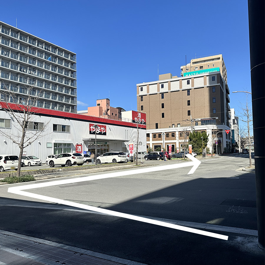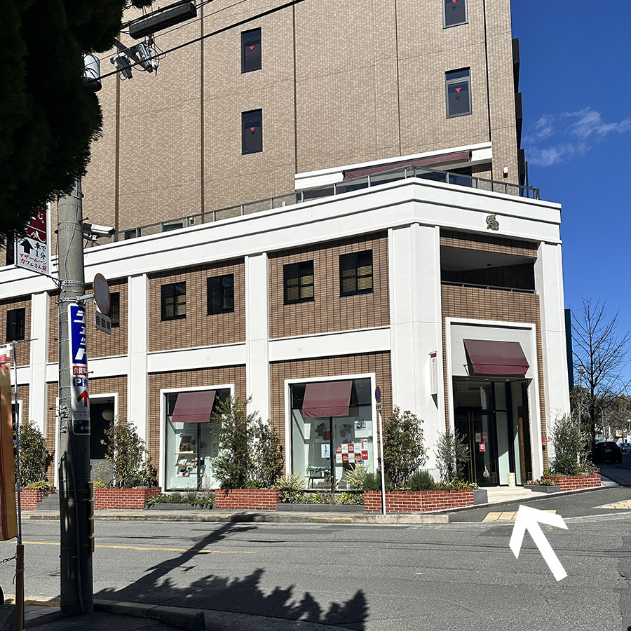 - 5:直進した先にある十字路の左手側に、三京商会の実店舗の入口があります。