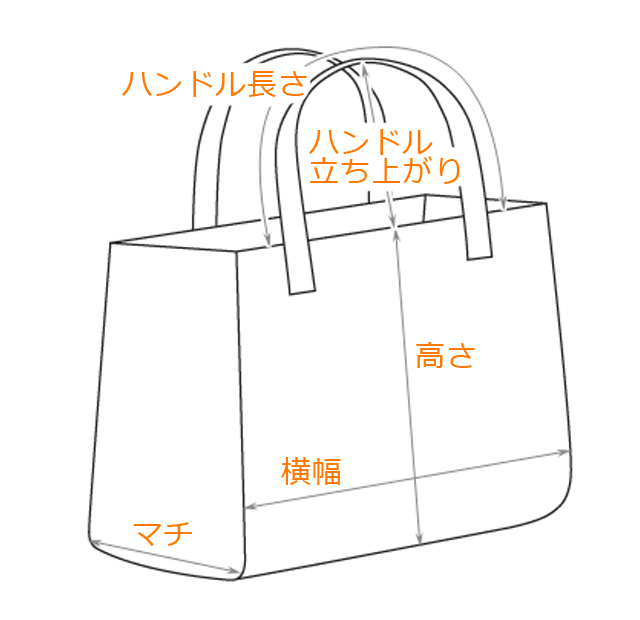 横幅・マチは底面部分を計測、高さはバッグ本体の上部までを底面から垂直に計測