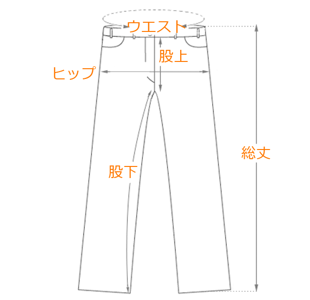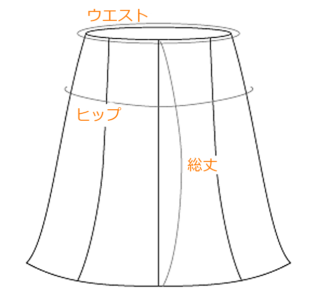 ・タックやプリーツ等の伸縮する部位は伸ばさない状態で測ります。