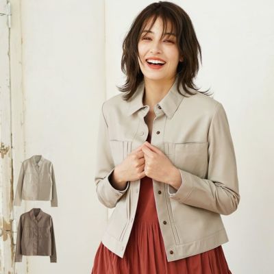 レザーと思えないくらい柔らかいです。 デザインも素敵でパンツにもスカートにもワンピースも合いました。秋が待ち遠しいです。