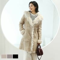 ムートンコート レディース 冬 フード付き ベージュ/ライトグレー/ブラック M-LL 6F