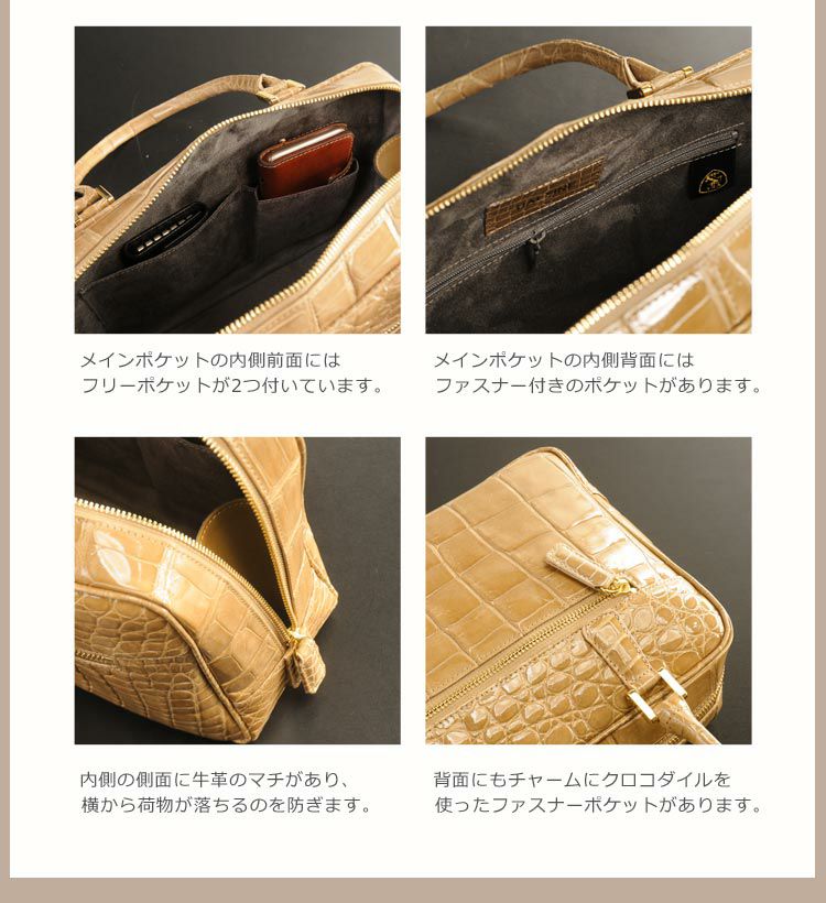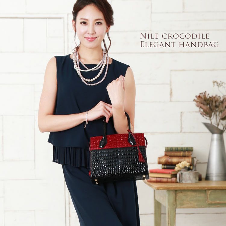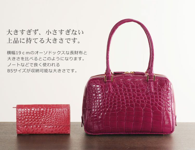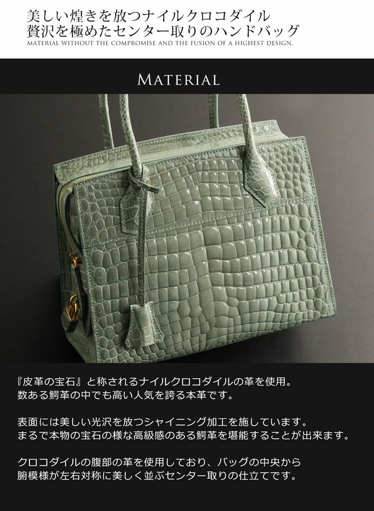 他の画像を見る exotic leather 日本製 ナイルクロコダイル ハンドバッグ / センター取り/ シャイニング加工 / レディース 『クロコダイル保証書付き』 4FA ¥ 176,000 税込 お気に入りに登録する