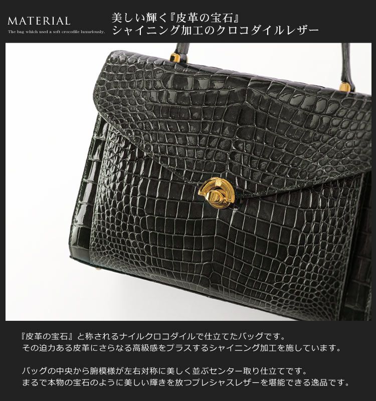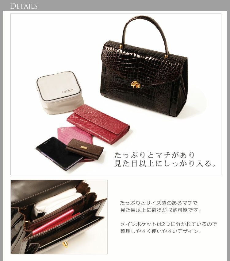 他の画像を見る exotic leather クロコダイル ハンドバッグ シャイニング 加工 センター取り 南京錠 付き 2WAY 仕様 『クロコダイル保証書付き』 4FA ¥ 308,000 税込 お気に入りに登録する