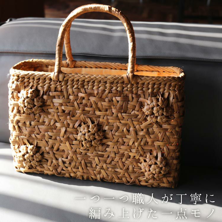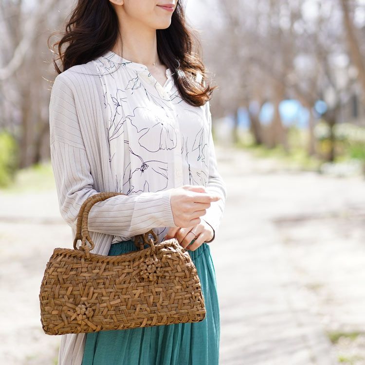 他の画像を見る 山葡萄 かごバッグ 乱れ編み 花編み 天然素材 手編み 山ぶどう ハンドバッグ 巾着型 柿渋染め レディース (07000441r) 4FA ¥ 57,200 税込 お気に入りに登録する