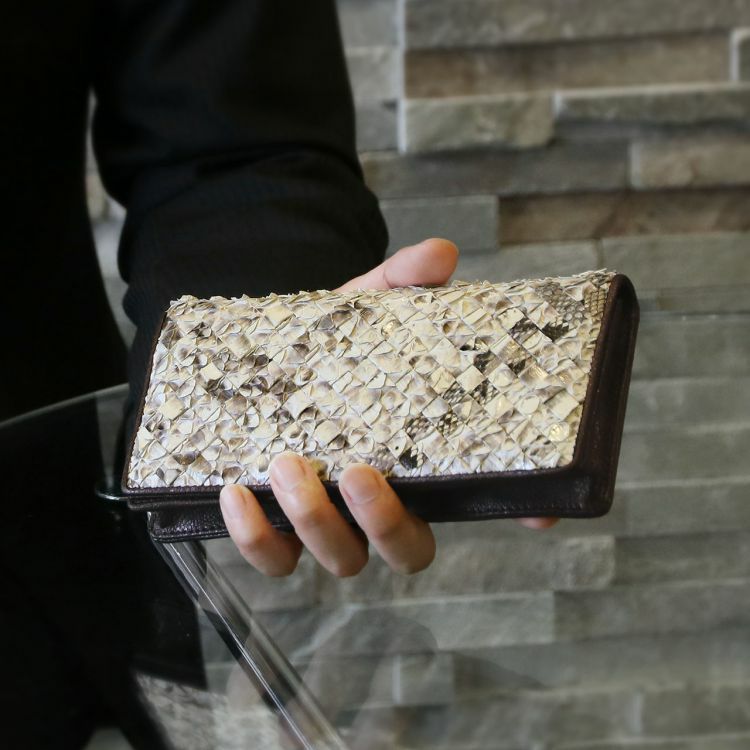 他の画像を見る exotic leather 【訳あり】パイソン メッシュ 長財布 メンズ イントレチャート 財布 革 本革 メッシュ 軽量 軽い 蛇革 ナチュラル ダークブラウン ブラック 黒 二つ折り長財布 カード収納9枚 パイソン柄 金運 4FC (06000406-mens-1r)【ネコポスで送料無料】 ¥ 5,500 税込 お気に入りに登録する