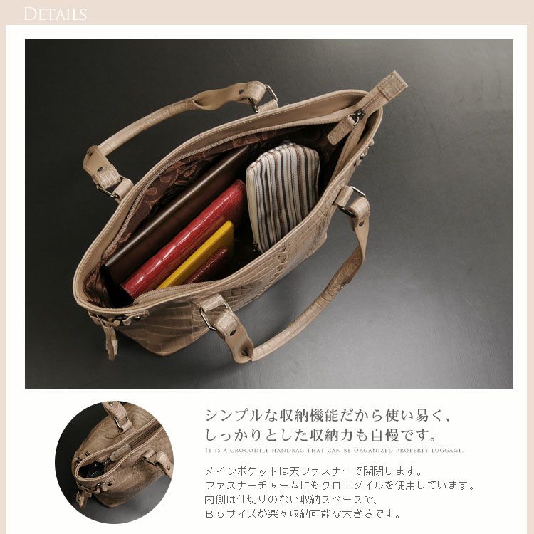 他の画像を見る exotic leather クロコダイル シャイニング 目地染め トート バッグ 日本製 レディース 『クロコダイル保証書付き』 4FA ¥ 187,000 税込 お気に入りに登録する
